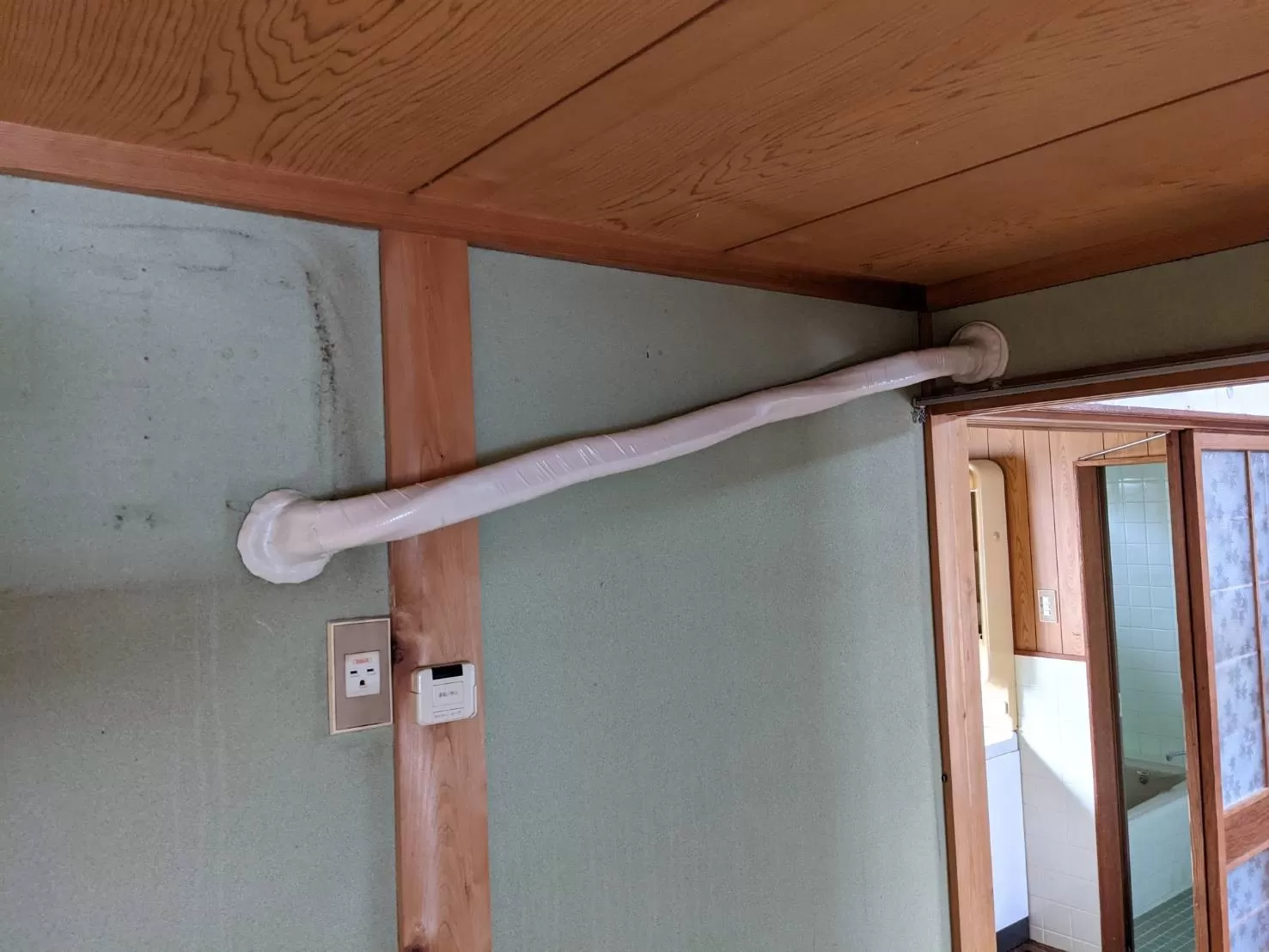 既存の穴を代用してキッチンまでエアコンを持っていく形になりました(^^)/