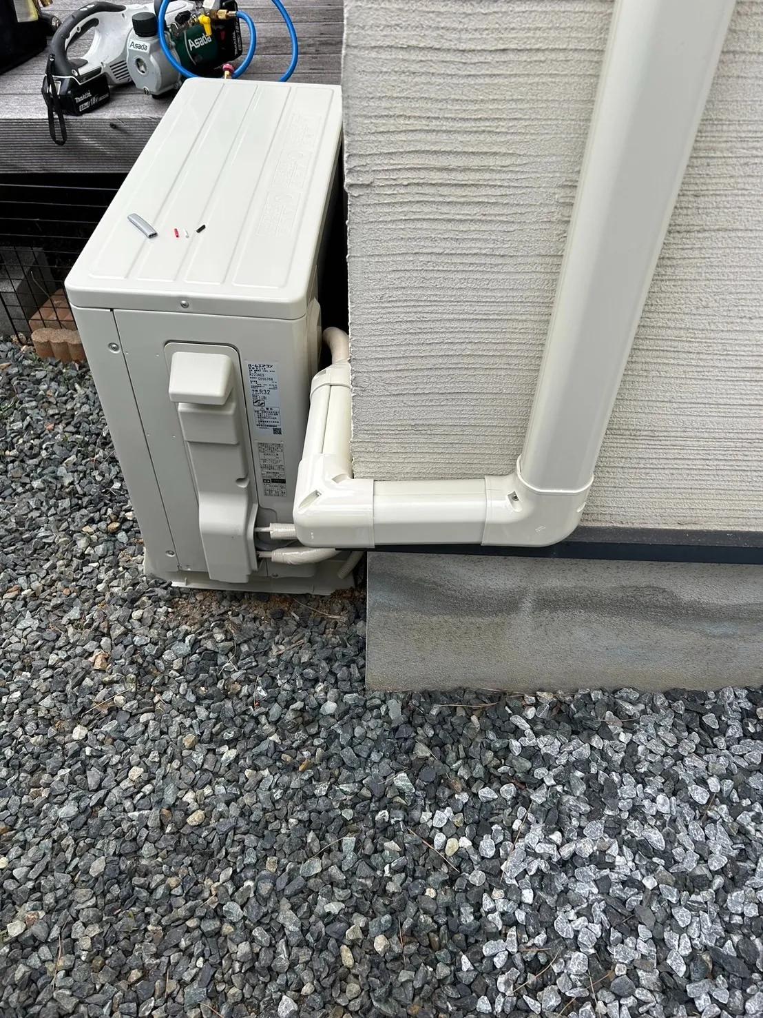 そのため今回は室外機の近くまでしっかり配管を隠しています