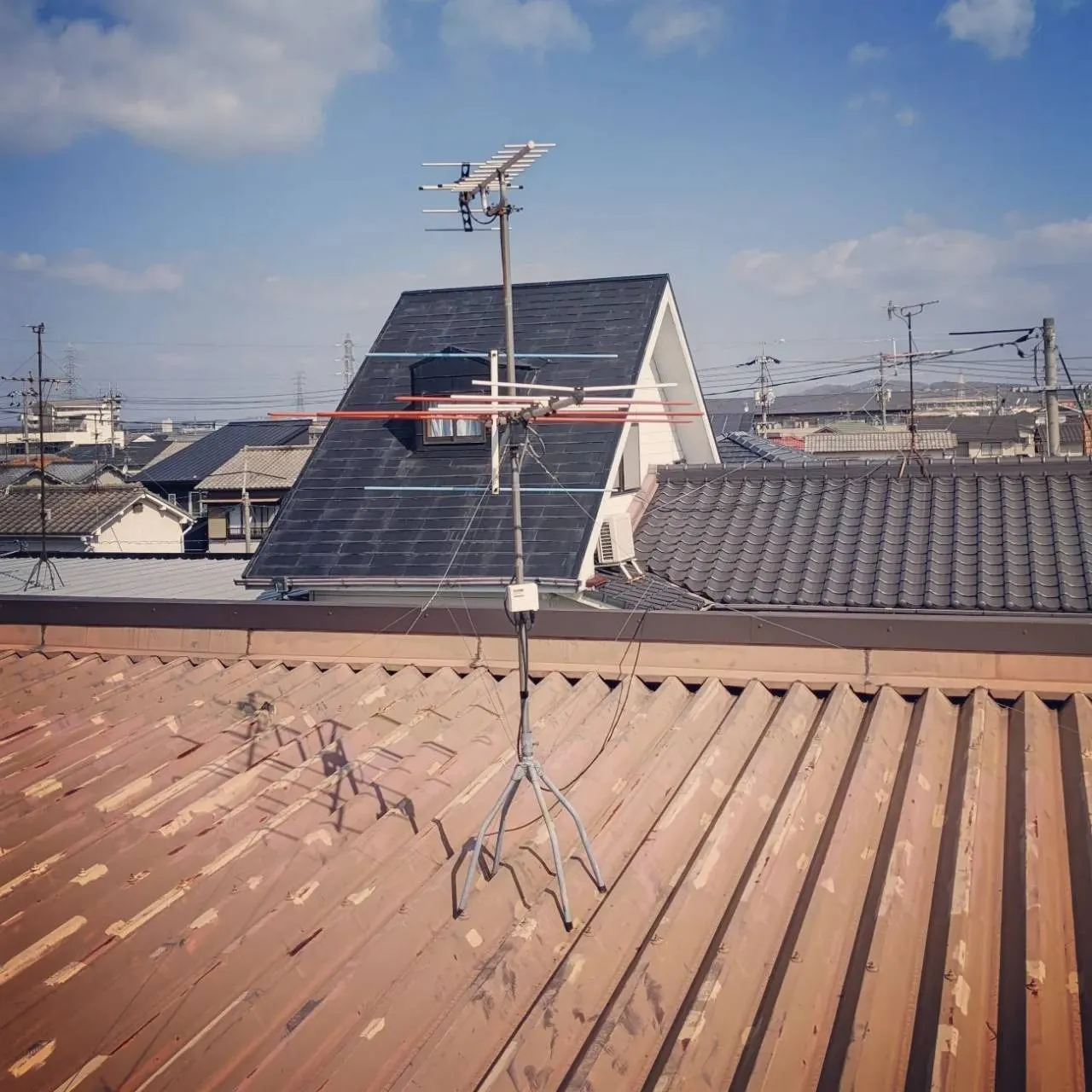 元消防士が倉敷でアンテナ工事をしています!UNO設備へ! おはこんばんちは!UNO設備のUNOです♪今日は倉敷市にアンテナ工事をしにきました風が強くて困っています(;'∀')既存のアンテナを取り替えたいとのことで入れ替え工事を受けました!古いアンテナなのでサビ…